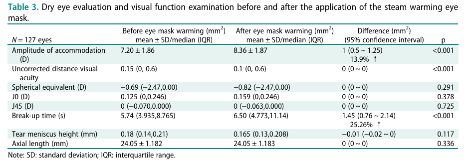 •Lee W, Kim J, Seo S. The efficacy of warm compresses on tear film stability and ocular surface in patients with dry eye syndrome. Invest Ophthalmol Visual Sci 2018; 59: 4782–4790.