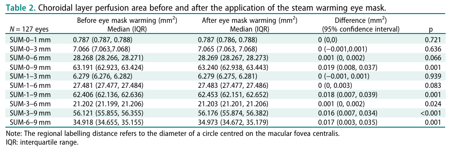 蒸汽眼罩可能改善脉络膜血流,周边区域即时变化明显